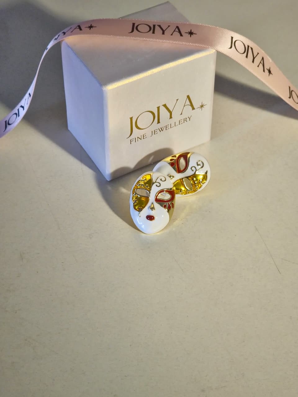 Step into elegance with our Masquerade Muse Earrings, inspired by the allure of Venetian masks. Crafted with 18K gold plating, intricate enamel artistry, and delicate red accents, these statement earrings embody mystery and sophistication. Lightweight yet striking, they are anti-tarnish, hypoallergenic, and designed to make every occasion feel like a celebration. Perfect for women who love to stand out with quiet luxury.