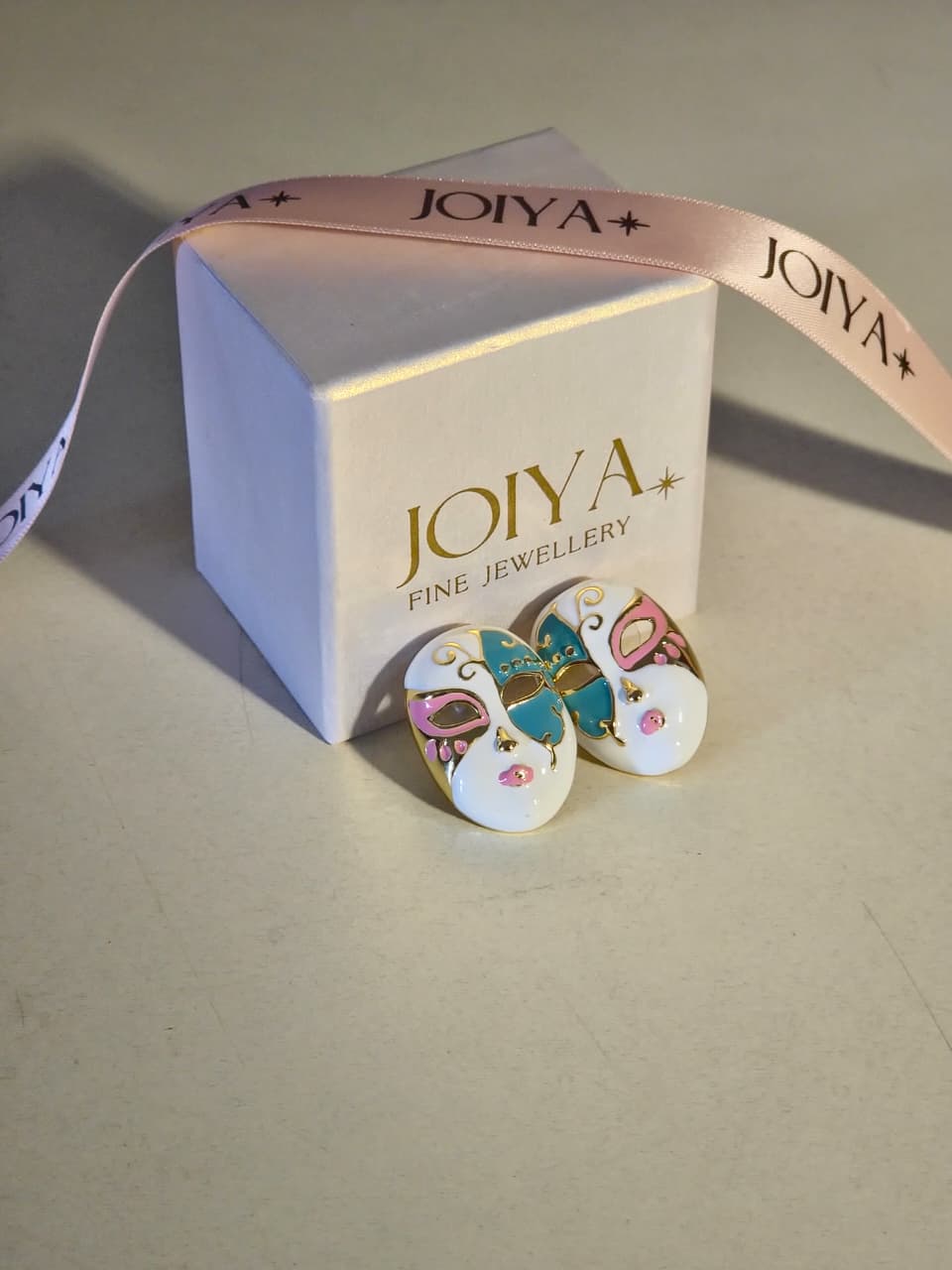 Step into elegance with our Masquerade Muse Earrings, inspired by the allure of Venetian masks. Crafted with 18K gold plating, intricate enamel artistry, and delicate red accents, these statement earrings embody mystery and sophistication. Lightweight yet striking, they are anti-tarnish, hypoallergenic, and designed to make every occasion feel like a celebration. Perfect for women who love to stand out with quiet luxury.